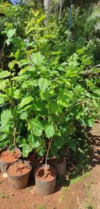 Quando plantadas entre mudas, o plantio deve contar com espaçamento de 50cm a 60cm entre plantas e de 1,5m a 3m entre linhas; enquanto na formação de árvores pode-se trabalhar com distâncias de 3m a 4m entre linhas. É possível realizar o cultivo consorciado, especialmente com chá e café, e a colheita costuma acontecer entre setembro e novembro.