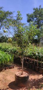 O plantio mais indicado para a produção de frutas é através de enxertia, pois além de tornar a árvore mais resistente, possibilita uma produção em tempo menor; e o período recomendado é de junho a setembro. É recomendado o cultivo em regiões mais altas, serranas, frescas e com solos férteis. O espaçamento recomendado é de 4m a 7m x 2m a 5m, dependendo da variedade usada no enxerto. Deve ser feita uma análise para indicar a calagem e adubação mais adequada para cada caso, mas em geral recomenda-se a fertilização no plantio, durante a formação e para produção. A irrigação é aconselhada principalmente durante estiagens (especialmente na primavera).